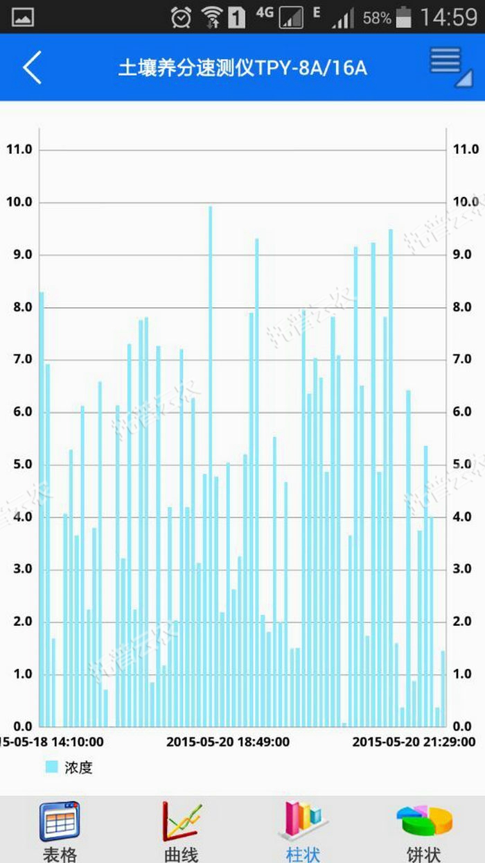 2、顯示個(gè)通道的檢測(cè)時(shí)間、檢測(cè)項(xiàng)目、吸光度、濃度;以及對(duì)應(yīng)的作物種類、施肥種類、施肥方案等信息。